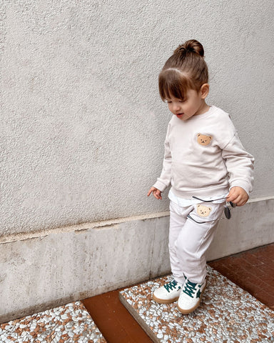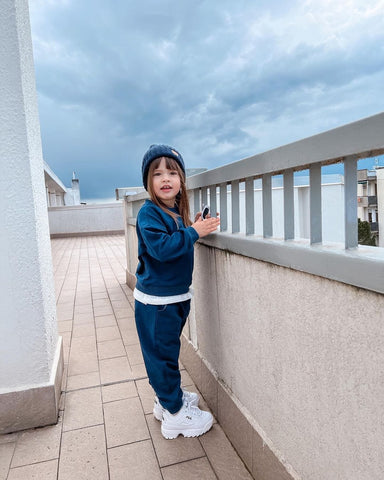Hit refresh on your stay home wardrobe with this tracksuit set for your little one. This tracksuit set is as cool as it is comfortable. Cut from soft cotton blend material, designed to be worn on the high hip with an elasticated waistband and hem. Wear yours with the co-ordinating hoodie and matching sneakers. This set will be your kid's new favorite tracksuit set to wear around the house.