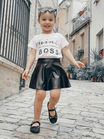 Style your little one in this mini-boss 2 piece outfit. This set includes a white t-shirt and a black A-line skirt. She will feel that she is in charge of her day and her life. What more could we want for the next generation of strong independent women?