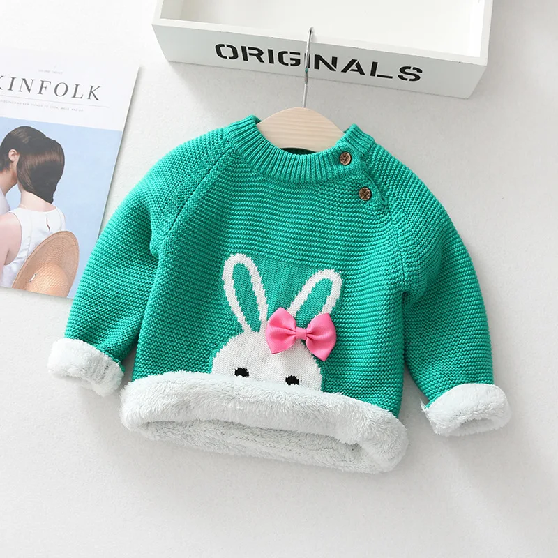 A lovely soft sweater for your little bunnies. Featuring 2 shoulder closure buttons for a quick change. Embroidered cute little bunny with ribbon tie. It has an inner layer that will give a warm feeling during breezy weather. Pair back with denim jeans and boots to complete the look.