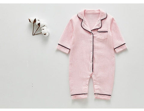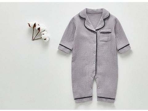 Kids will sleep blissfully in this solid kid's pajamas romper. It features long sleeves and a full front button closure. The bottom snap closure for an easy diaper change. The soft fabric will get them feeling comfy all night long!